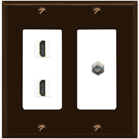 Coax 2 HDMI Wall Plate-2 Gang Brown/White