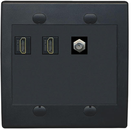 COAX 2 HDMI Wall Plate-Flat 2 Gang Black/Black