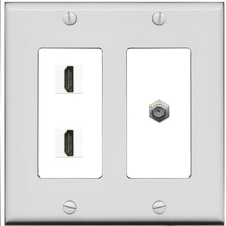 COAX 2 HDMI Wall Plate-2 Gang Gray/White