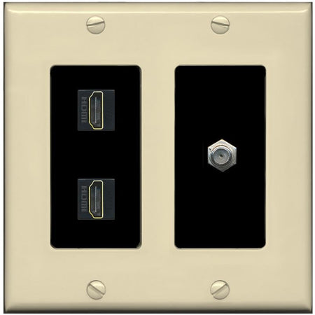 COAX 2 HDMI Wall Plate-2 Gang Ivory/Black