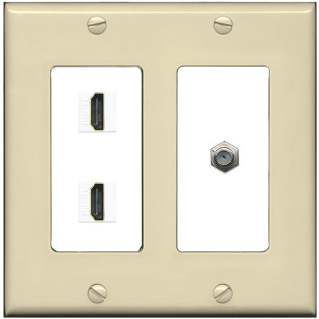 COAX 2 HDMI Wall Plate-2 Gang Ivory/White