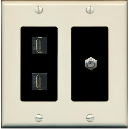 Coax 2 HDMI Wall Plate-2 Gang Light-Almond/Black