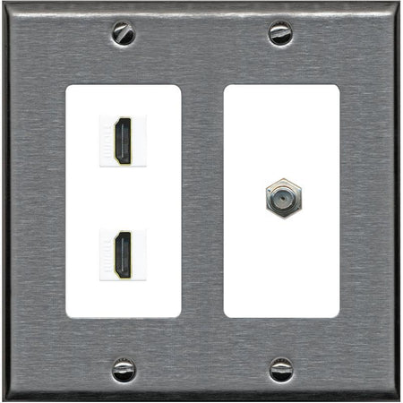 Coax 2 HDMI Wall Plate-2 Gang Stainless/White
