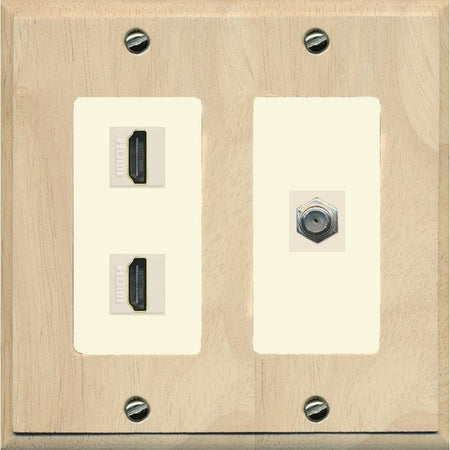 Coax 2 HDMI Wall Plate-2 Gang Wood/Light-Almond