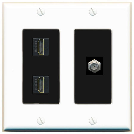 Coax 2 HDMI Wall Plate-2 Gang White/Black