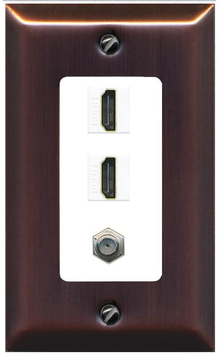 COAX 2 HDMI Wall Plate-1 Gang Brushed-Copper/White