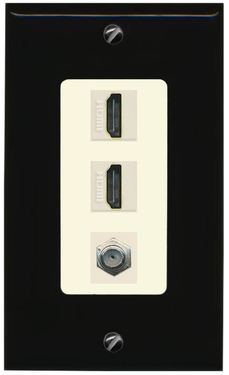 Coax 2 HDMI Wall Plate-1 Gang Black/Light-Almond