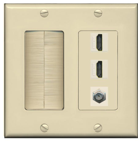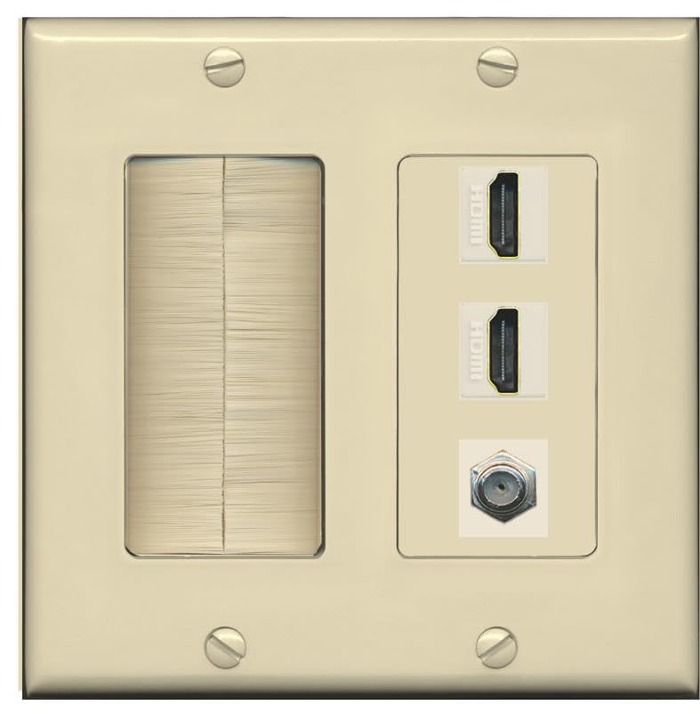 COAX 2 HDMI Wall Plate-Brush Ivory/Ivory