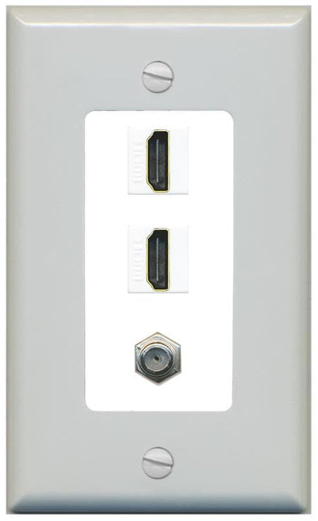 Coax 2 HDMI Wall Plate-1 Gang Gray/White