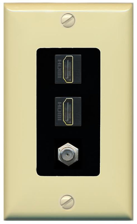 Coax 2 HDMI Wall Plate-1 Gang Ivory/Black