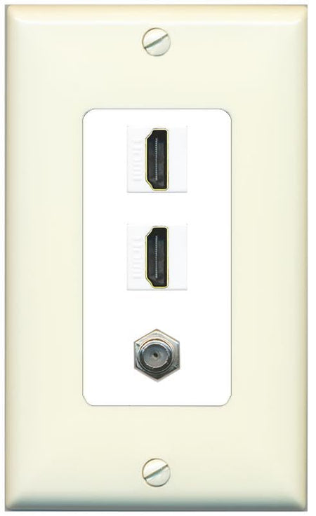 Coax 2 HDMI Wall Plate-1 Gang Light-Almond/White