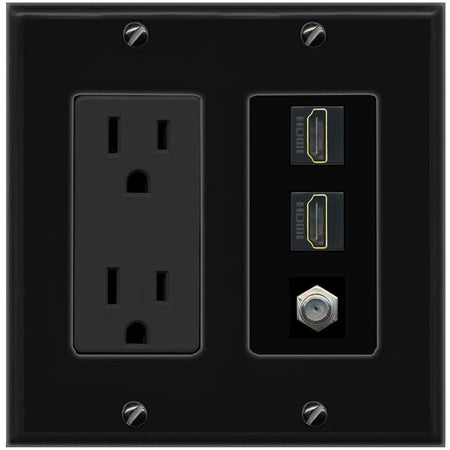 COAX 2 HDMI Wall Plate-Outlet Black/Black