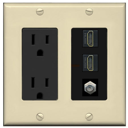 COAX 2 HDMI Wall Plate-Outlet Ivory/Black