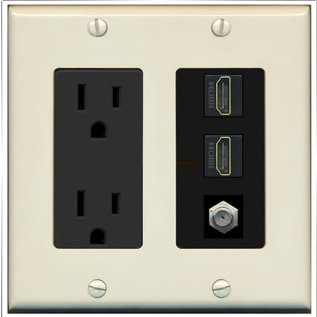 COAX 2 HDMI Wall Plate-Outlet Light-Almond/Black