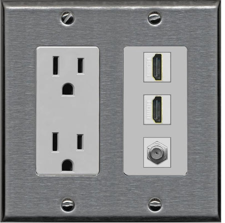 COAX 2 HDMI Wall Plate-Outlet Stainless/Gray