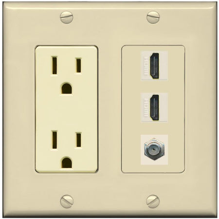 Coax 2 HDMI Wall Plate-Outlet Ivory/Ivory