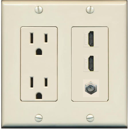 Coax 2 HDMI Wall Plate-Outlet Light-Almond