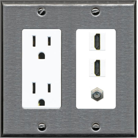 COAX 2 HDMI Wall Plate-Outlet Stainless/White