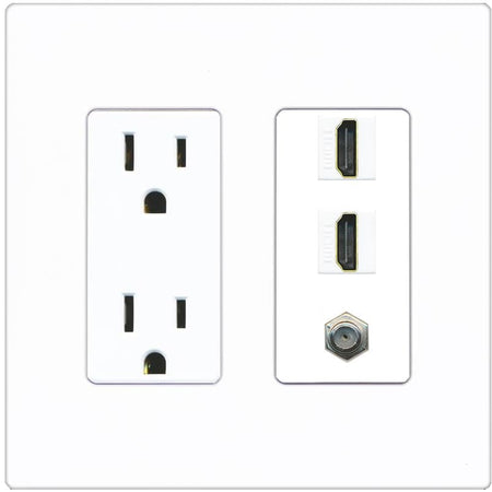 COAX 2 HDMI Wall Plate-Outlet Screwless White