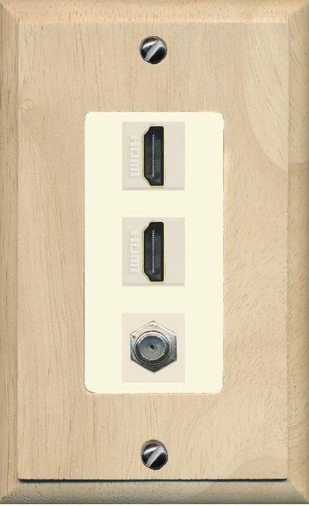 Coax 2 HDMI Wall Plate-1 Gang Wood/Light-Almond
