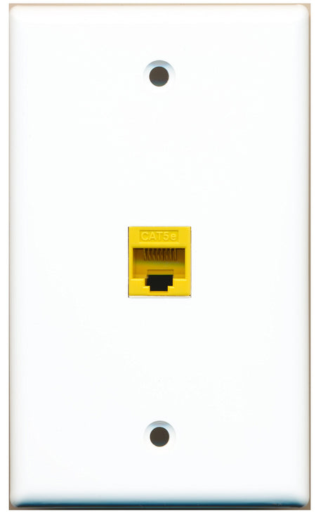 RiteAV - 1 Port Cat5e Ethernet Yellow Wall Plate White - Bracket Included