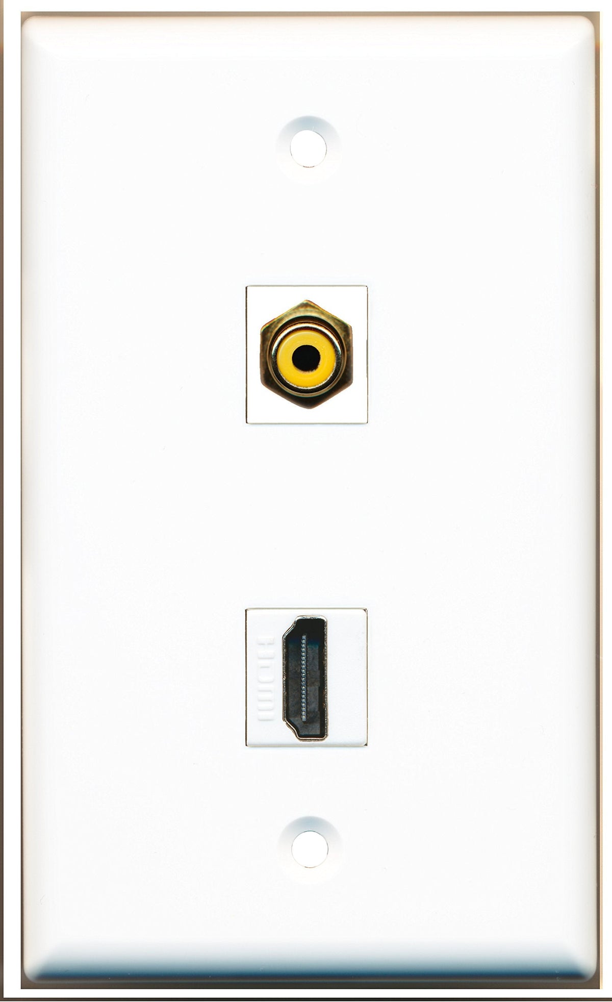 RiteAV - 1 Port HDMI - 1 Port RCA Yellow Wall Plate White - Bracket Included