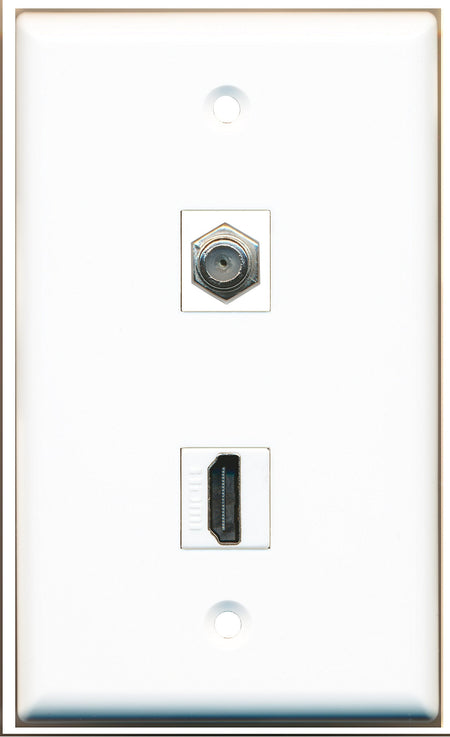 RiteAV - 1 Port HDMI - 1 Port Coax Port Cable TV F Type Wall Plate White - Bracket Included