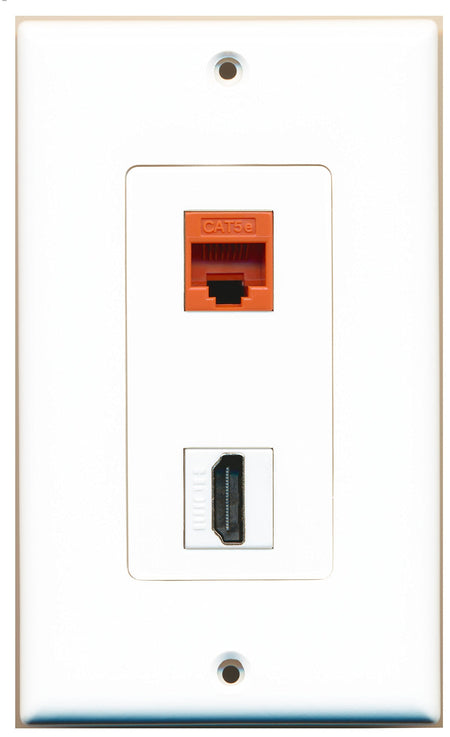 RiteAV 1 Port HDMI 1 Port Cat5e Ethernet Orange Wall Plate OVERSIZED White