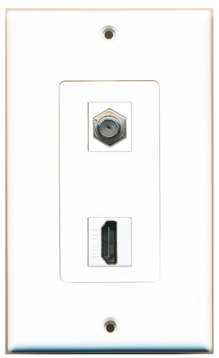 RiteAV 1 Port HDMI 1 Port Coax Port Cable TV F Type Wall Plate OVERSIZED White