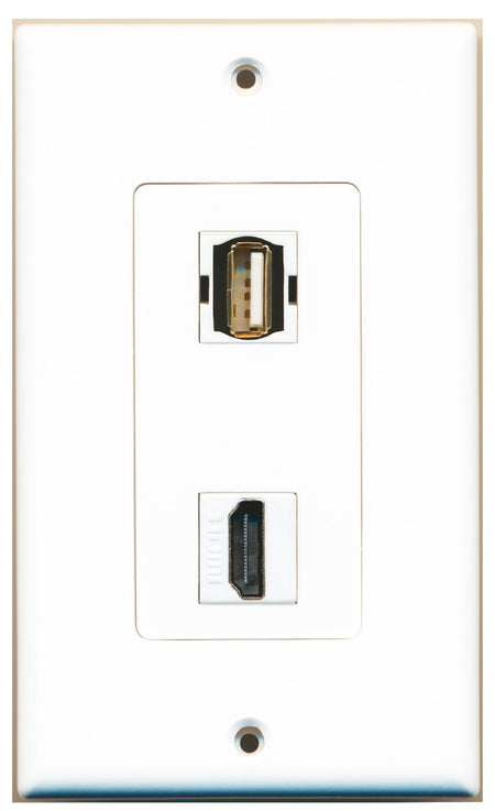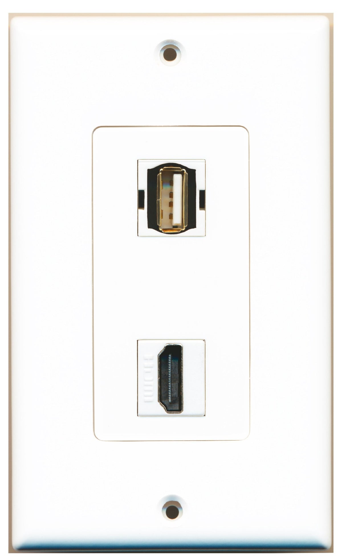 RiteAV 1 Port HDMI 1 Port USB A-A Wall Plate OVERSIZED White