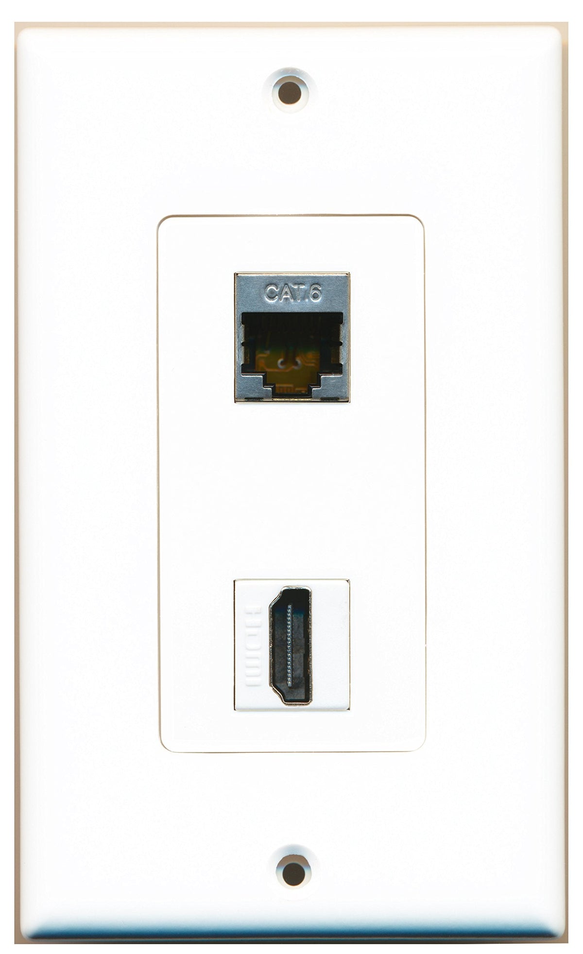 RiteAV 1 Port HDMI 1 Port Shielded Cat6 Ethernet Wall Plate OVERSIZED White