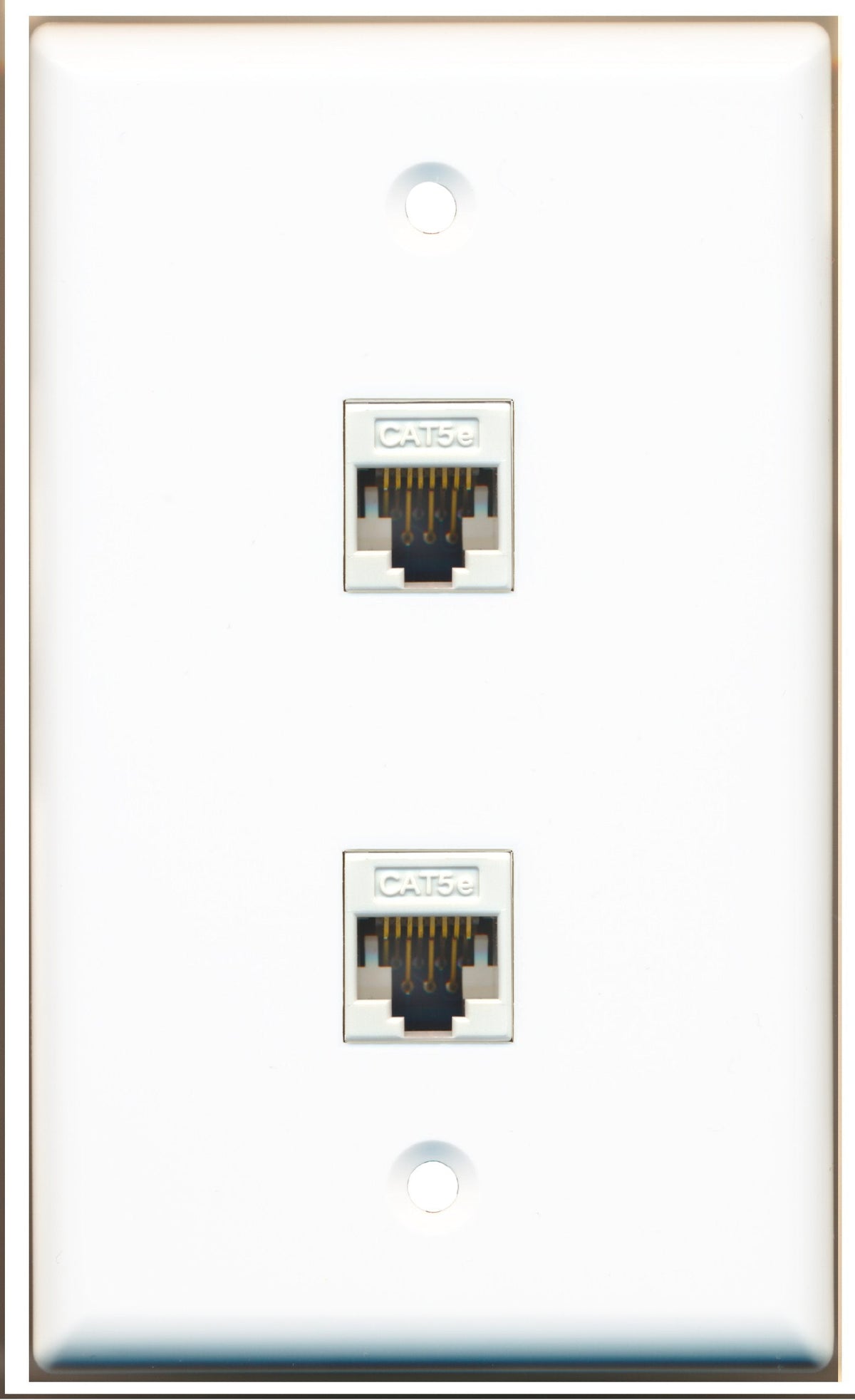 RiteAV - 2 Port Cat5e Ethernet White Wall Plate White - Bracket Included