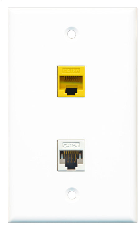 RiteAV - 1 Port Cat5e Ethernet White - 1 Port Cat5e Ethernet Yellow Wall Plate White - Bracket Included