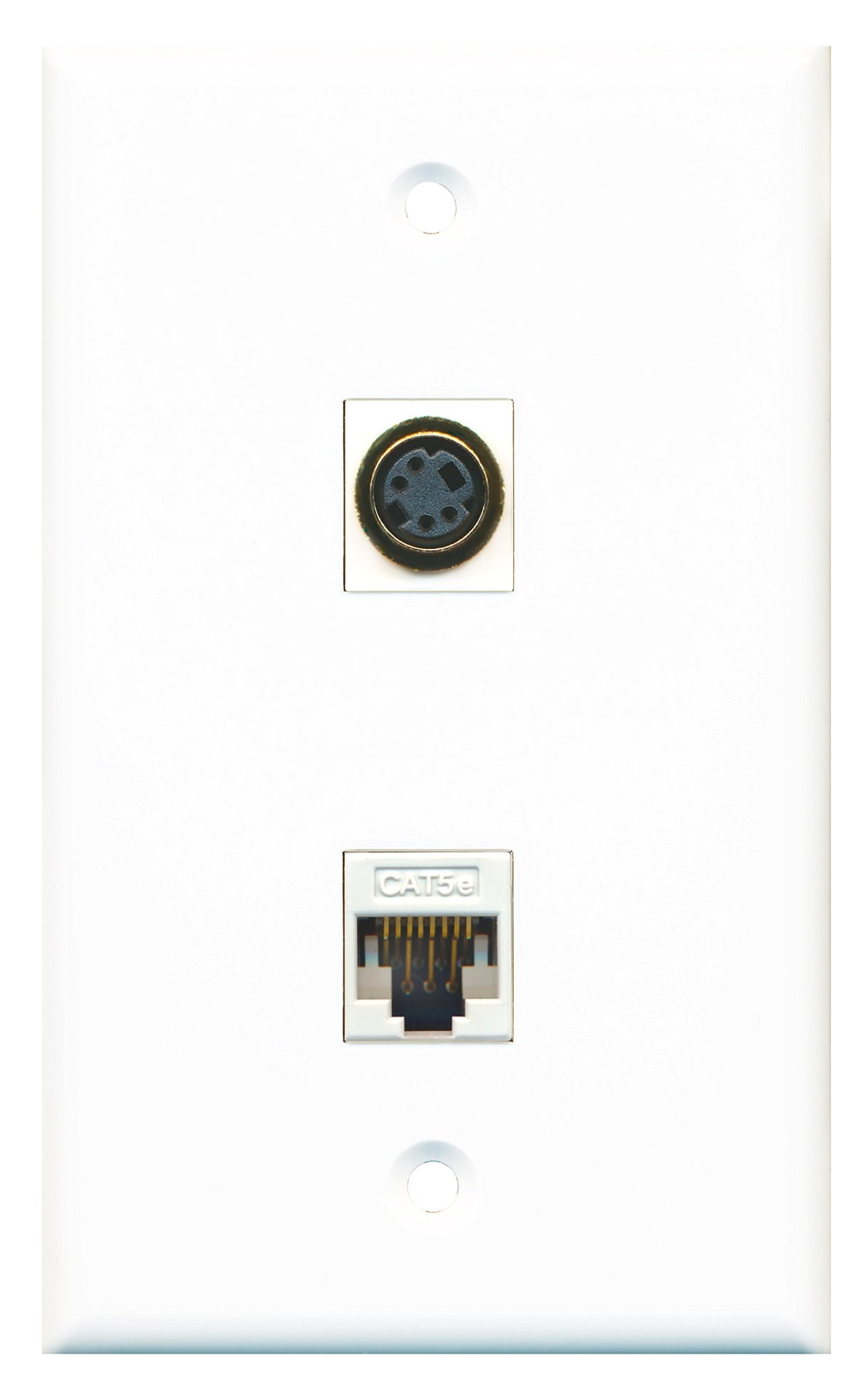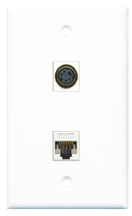 RiteAV - 1 Port S-Video - 1 Port Cat5e Ethernet White Wall Plate White - Bracket Included