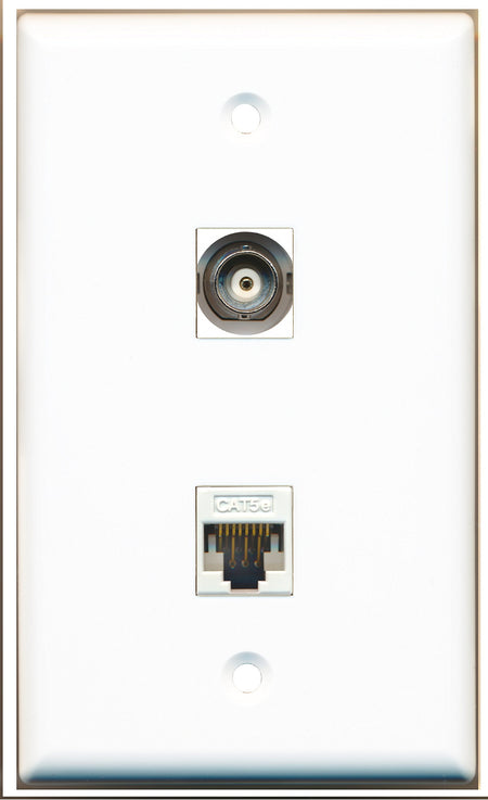 RiteAV - 1 Port BNC - 1 Port Cat5e Ethernet White Wall Plate White - Bracket Included
