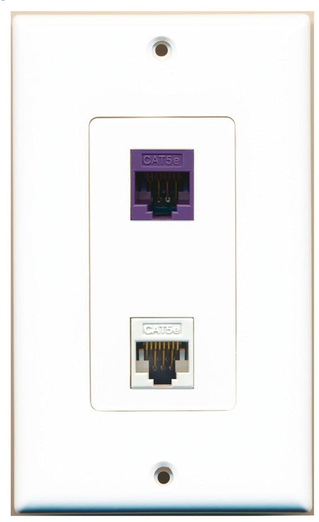 RiteAV 1 Port Cat5e Ethernet White 1 Port Cat5e Ethernet Purple Wall Plate OVERSIZED White