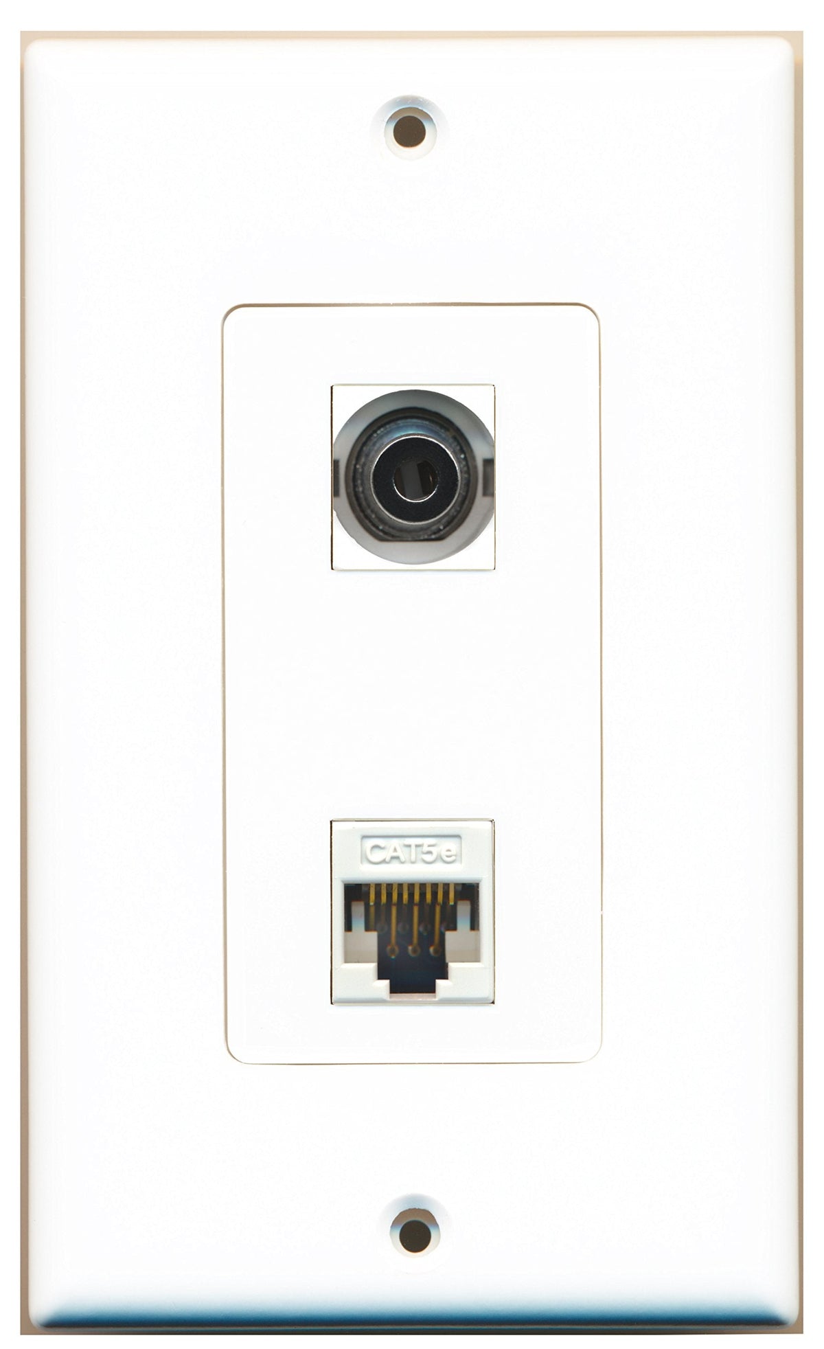 RiteAV 1 Port 3.5mm 1 Port Cat5e Ethernet White Wall Plate OVERSIZED White