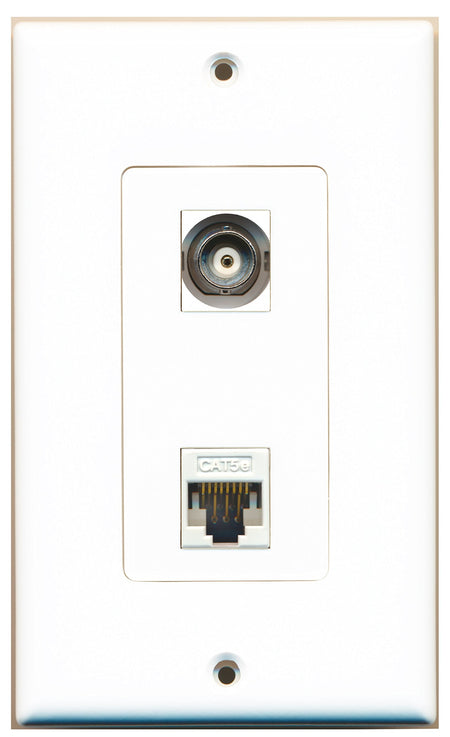 RiteAV 1 Port BNC 1 Port Cat5e Ethernet White Wall Plate OVERSIZED White