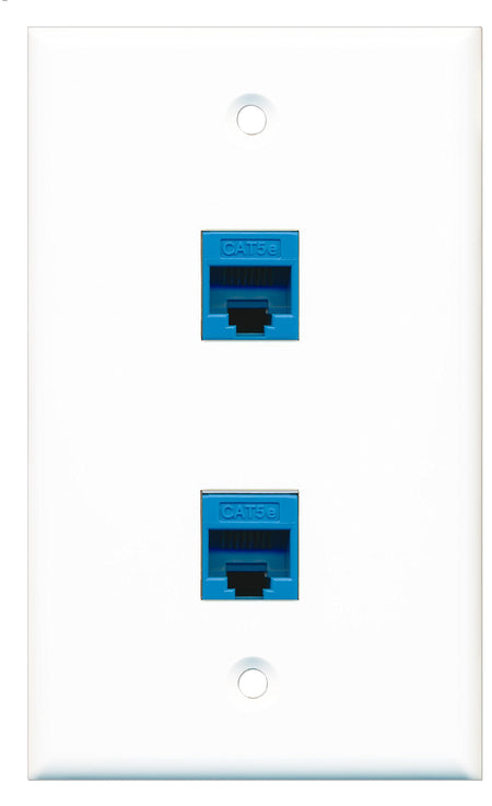 RiteAV - 2 Port Cat5e Ethernet Blue Wall Plate White - Bracket Included