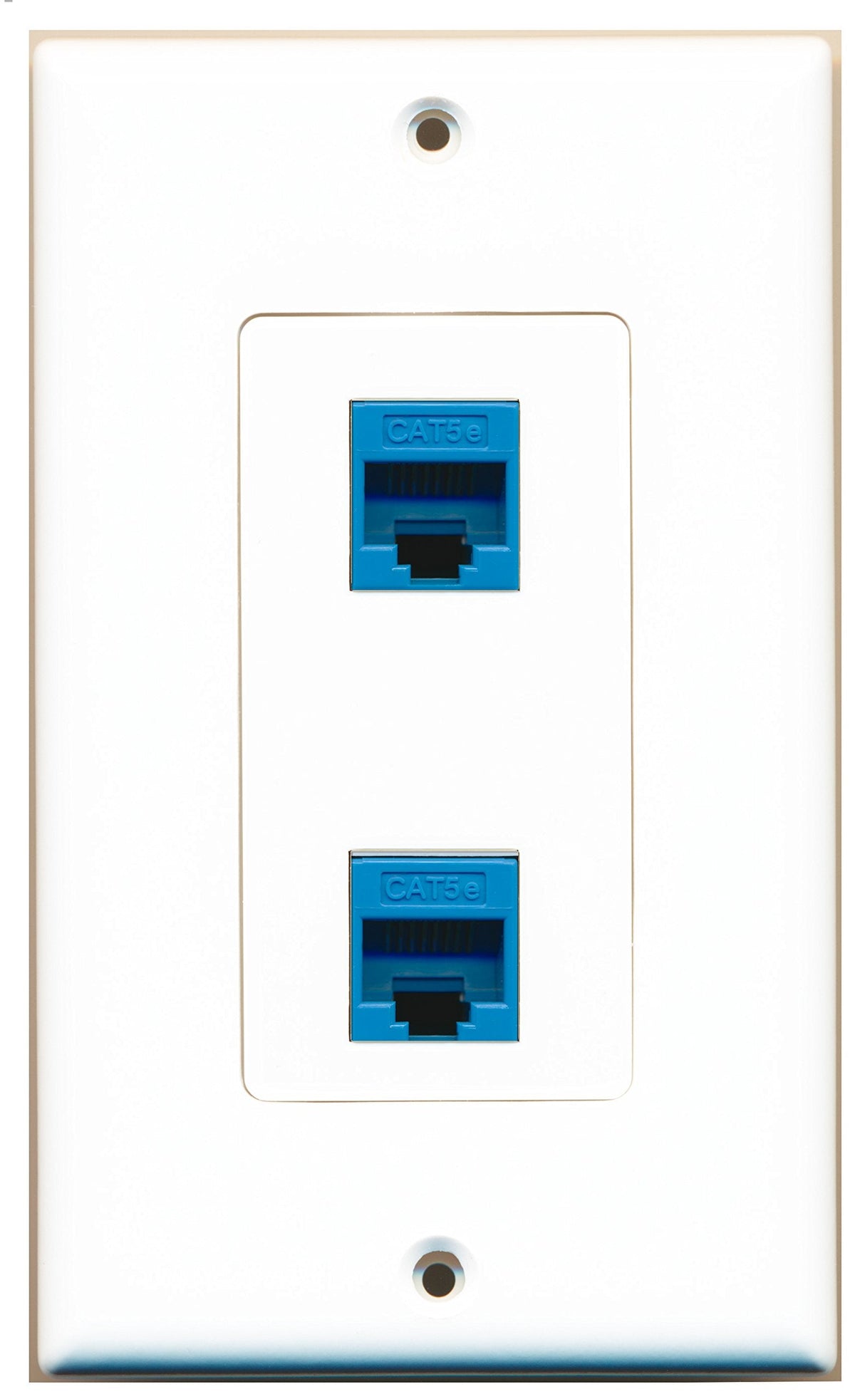 RiteAV 2 Port Cat5e Ethernet Blue Wall Plate OVERSIZED White