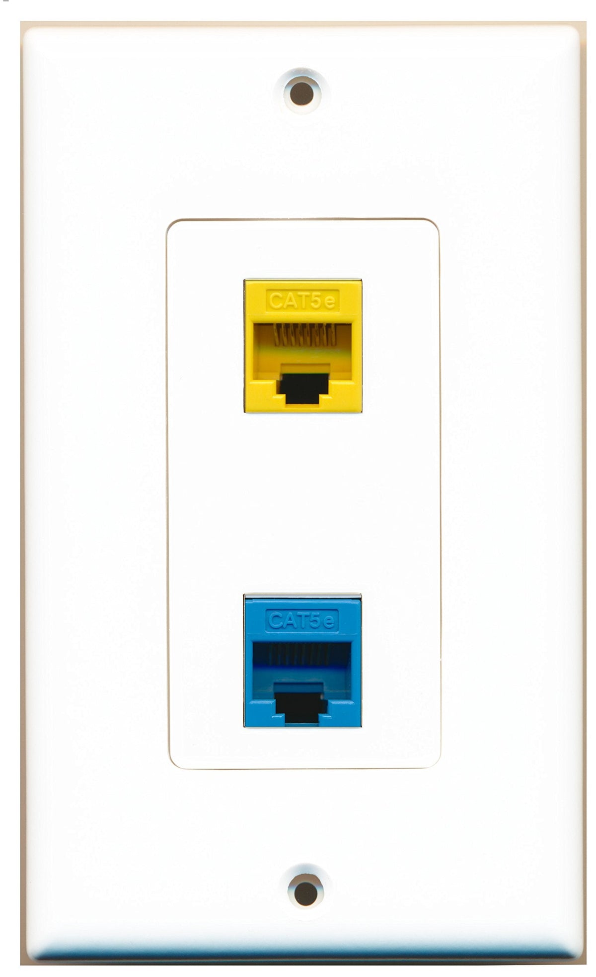 RiteAV 1 Port Cat5e Ethernet Blue 1 Port Cat5e Ethernet Yellow Wall Plate OVERSIZED White