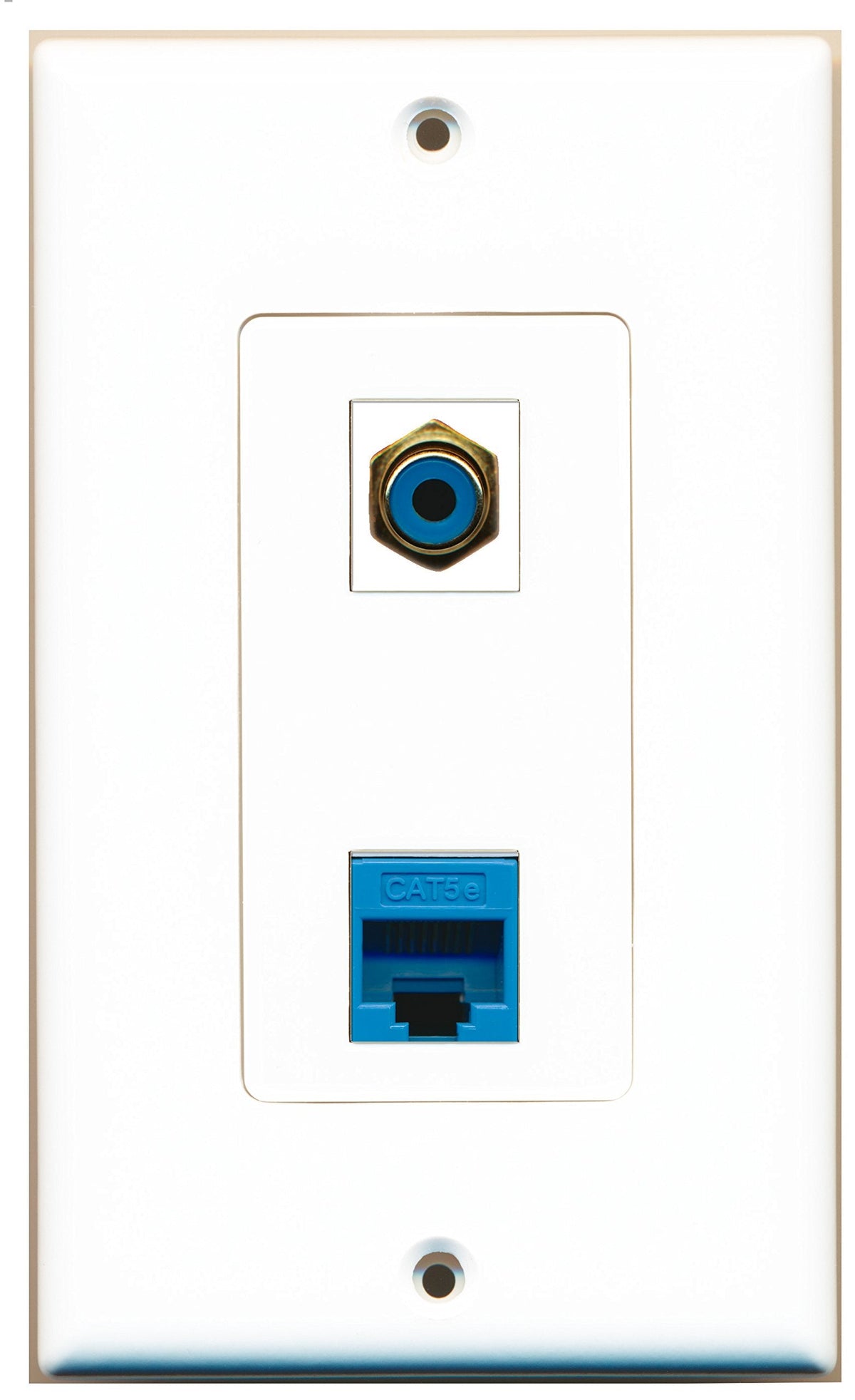 RiteAV 1 Port RCA Blue 1 Port Cat5e Ethernet Blue Wall Plate OVERSIZED White