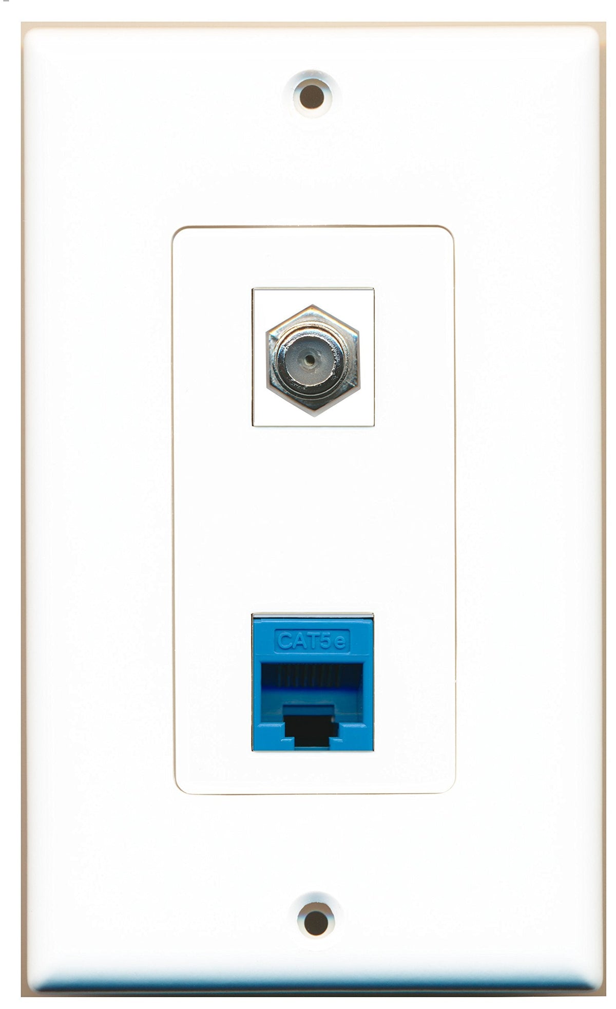 RiteAV 1 Port Coax Port Cable TV F Type 1 Port Cat5e Ethernet Blue Wall Plate OVERSIZED White