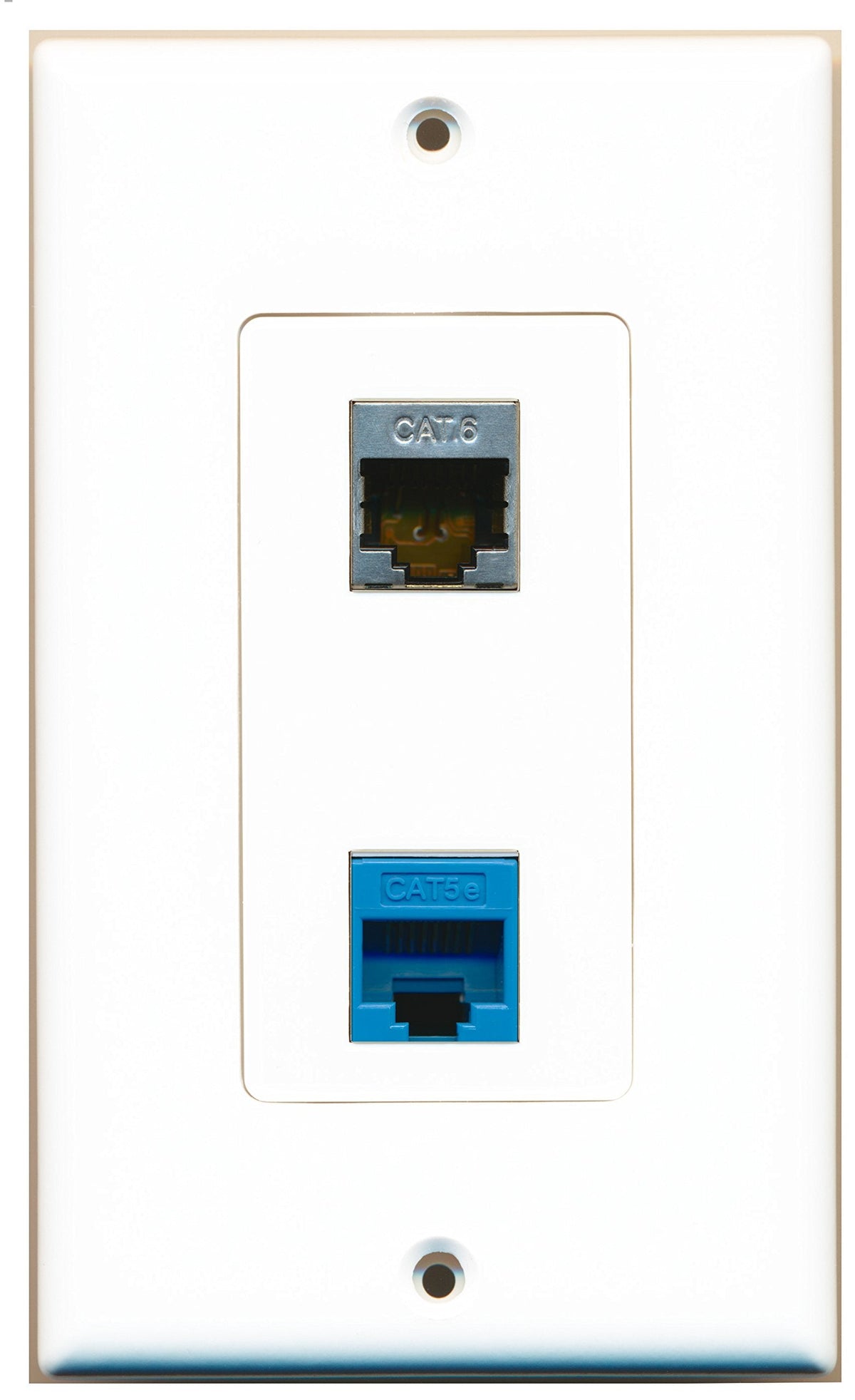 RiteAV 1 Port Shielded Cat6 Ethernet 1 Port Cat5e Ethernet Blue Wall Plate OVERSIZED White