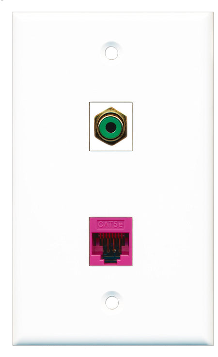 RiteAV - 1 Port RCA Green - 1 Port Cat5e Ethernet Pink Wall Plate White - Bracket Included