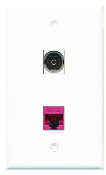 RiteAV - 1 Port Toslink Digital Audio - 1 Port Cat5e Ethernet Pink Wall Plate White - Bracket Included