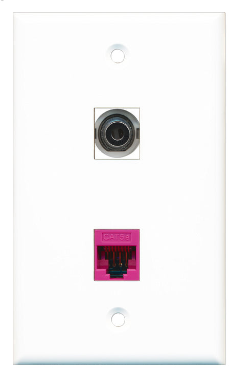 RiteAV - 1 Port 3.5mm - 1 Port Cat5e Ethernet Pink Wall Plate White - Bracket Included
