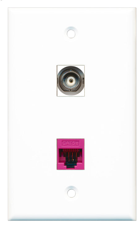 RiteAV - 1 Port BNC - 1 Port Cat5e Ethernet Pink Wall Plate White - Bracket Included