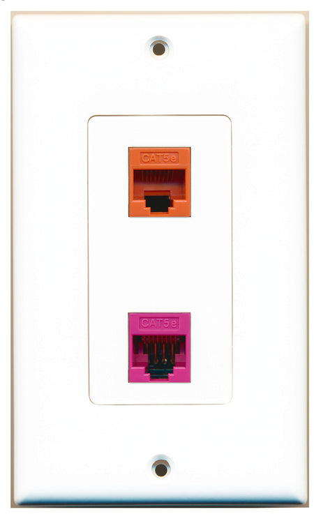 RiteAV 1 Port Cat5e Ethernet Pink 1 Port Cat5e Ethernet Orange Wall Plate OVERSIZED White