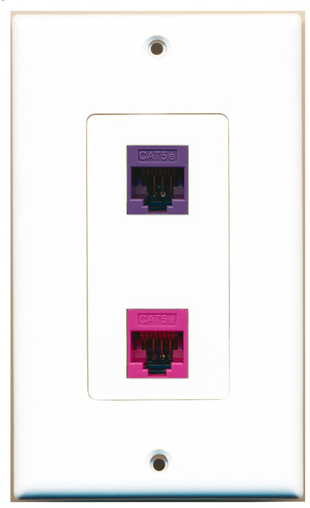 RiteAV 1 Port Cat5e Ethernet Pink 1 Port Cat5e Ethernet Purple Wall Plate OVERSIZED White